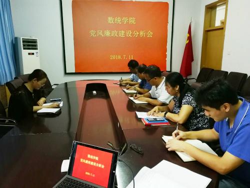2018年7月11日上午,根据年度工作部署,数统学院党委召开了党风廉政建设分析会,学校纪检委正处级纪检员郭海燕同志参加。