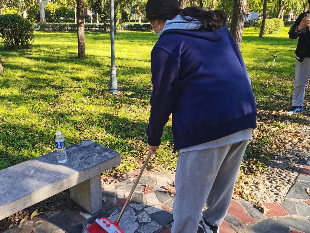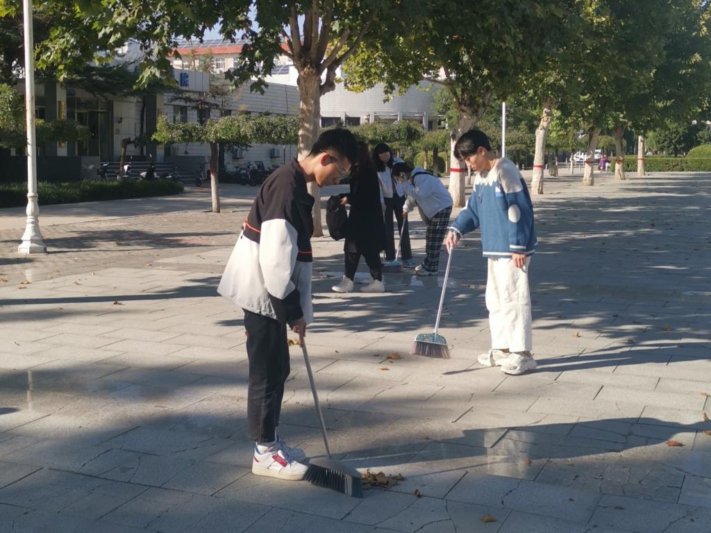 接下来,全体学生党员志愿者们按照区域划分小组,以小组为单位对第一教学楼前广场及附近环境进行认真、细致的打扫。