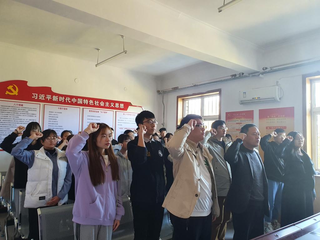 下午2点,重温入党誓词主题党日活动在4办503党建活动室举行,院党委委员耿会清出席并带领全体学生党员重温入党誓词。宣誓完毕后,耿会清强调希望大家能够牢记入党誓词,发挥先锋模范带头作用。