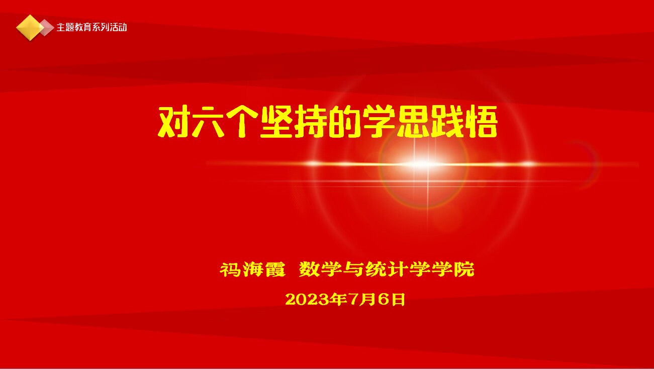 7月6日上午,数学与统计学学院党委书记祃海霞、院长梁建英,在405会议室为党委班子成员和党支部书记讲授主题教育专题党课。