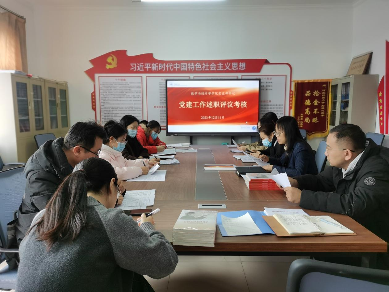 12月11日下午,数学与统计学学院在430党建活动室开展党支部书记抓基层党建工作述职评议考核活动。活动由学院党委书记祃海霞主持,党委成员和全体党支部书记参加。
