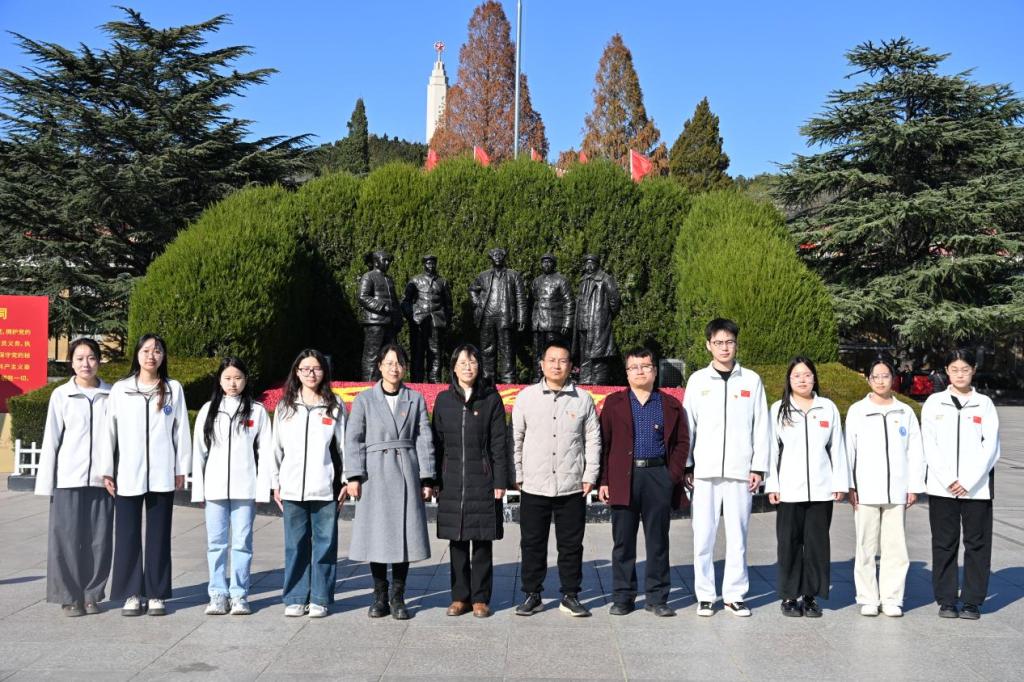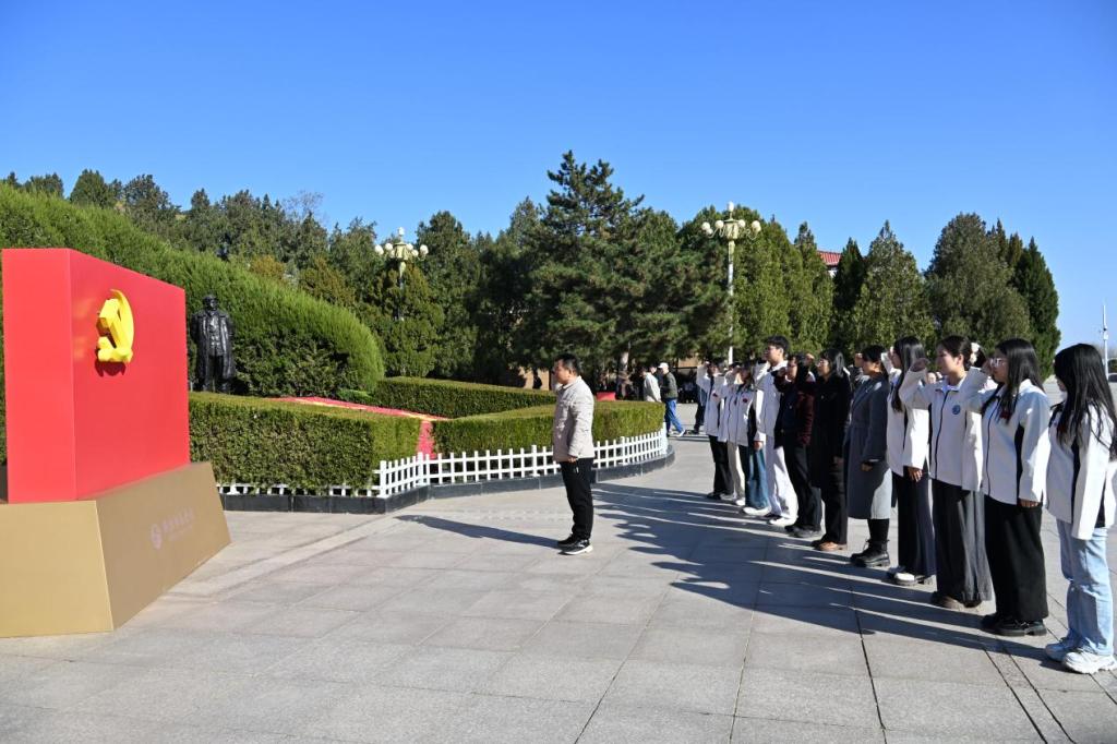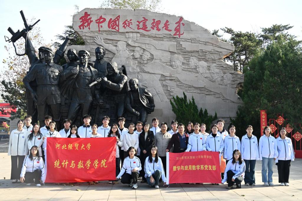 2025年11月22日,太阳成集团tyc33455ccww数学与应用数学系党支部“双带头人”工作室组织师生代表,赴革命圣地西柏坡与乡村振兴典范塔元庄开展“红擎•新财经—守初心传薪火 做好新时代立德树人工程”主题党建活动。系支部书记、工作室负责人常之魁带队,学院党委书记祃海霞、党委副书记路荣、副院长张良勇及30名学生代表参加。