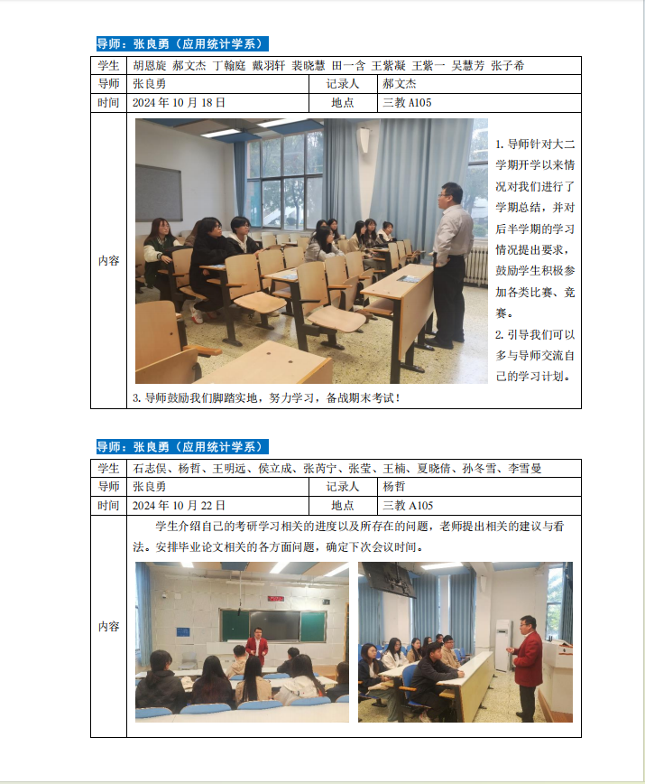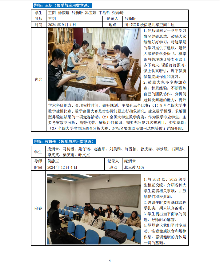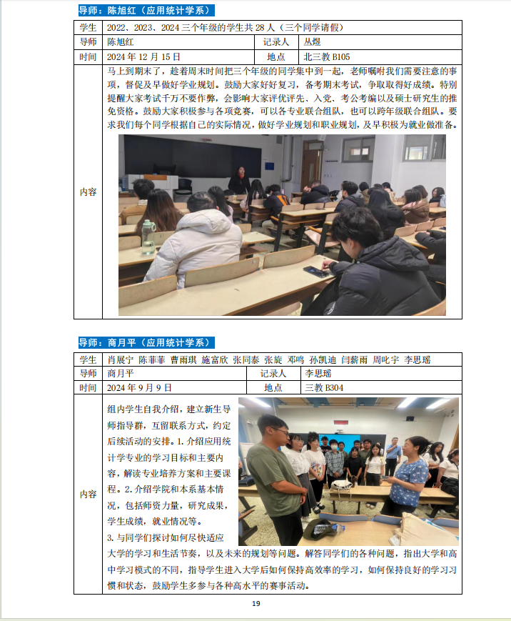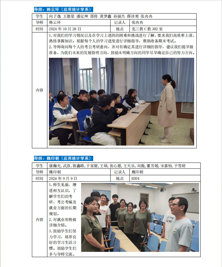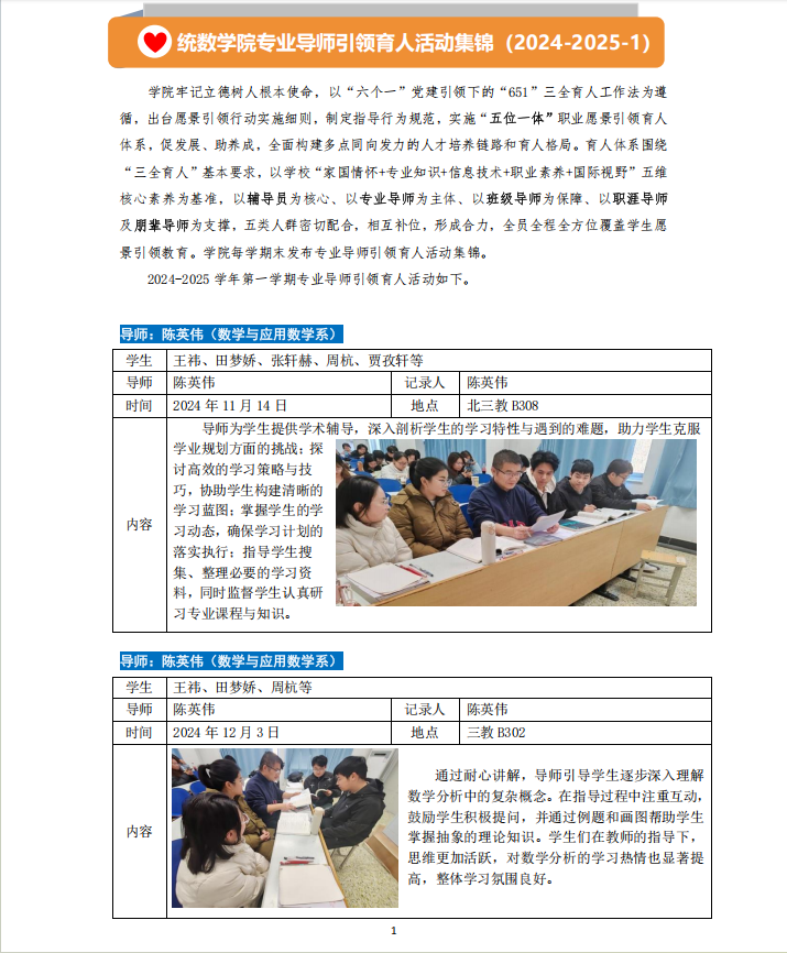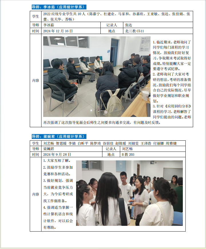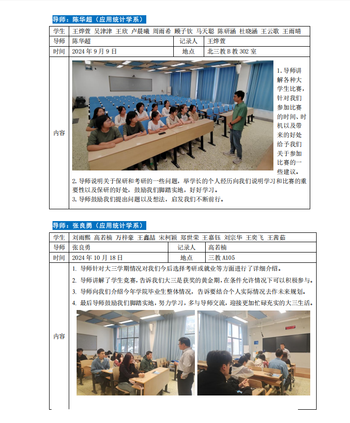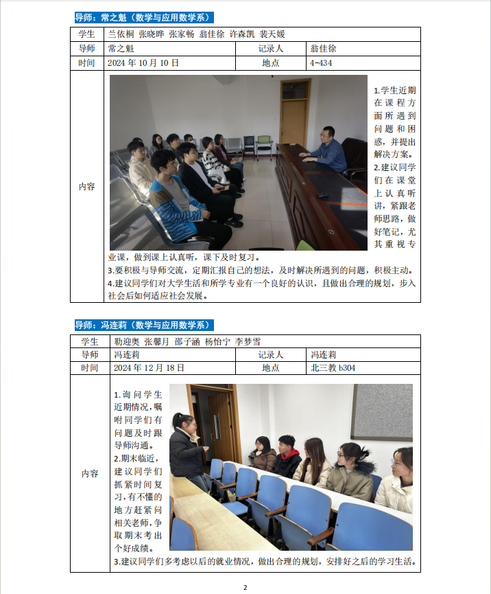 统数学院专业导师引领育人活动集锦(2024-2025-1)