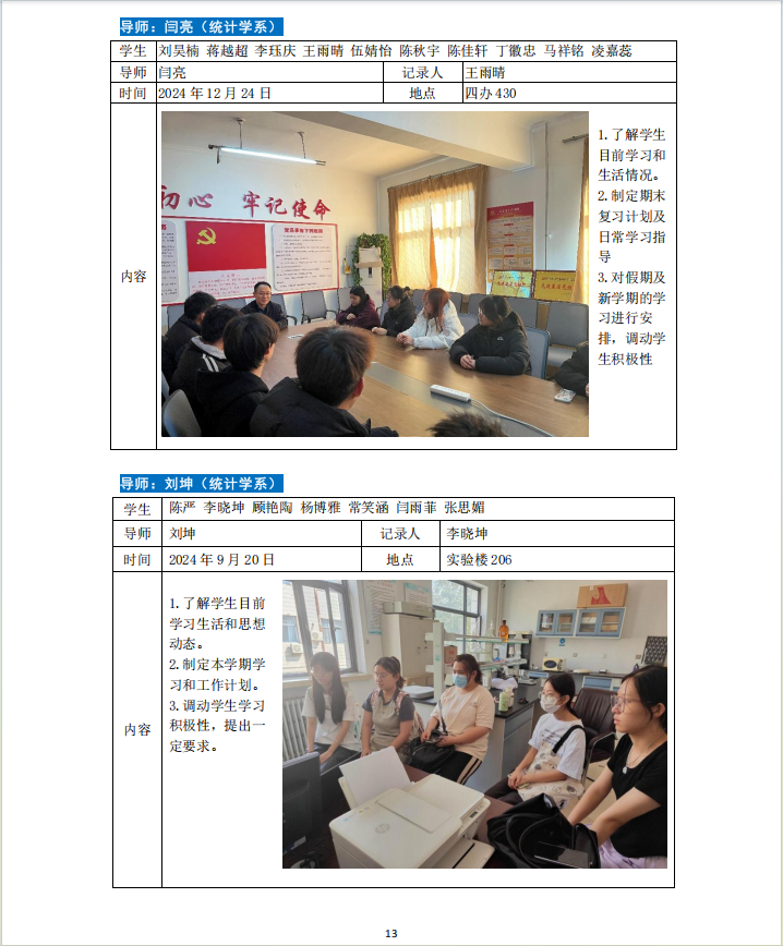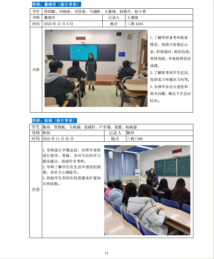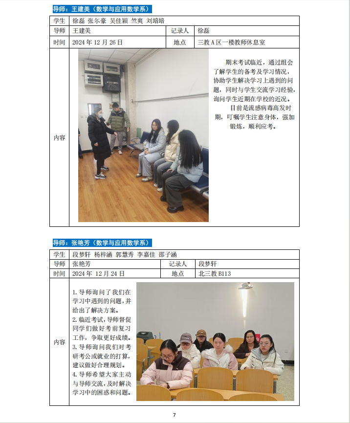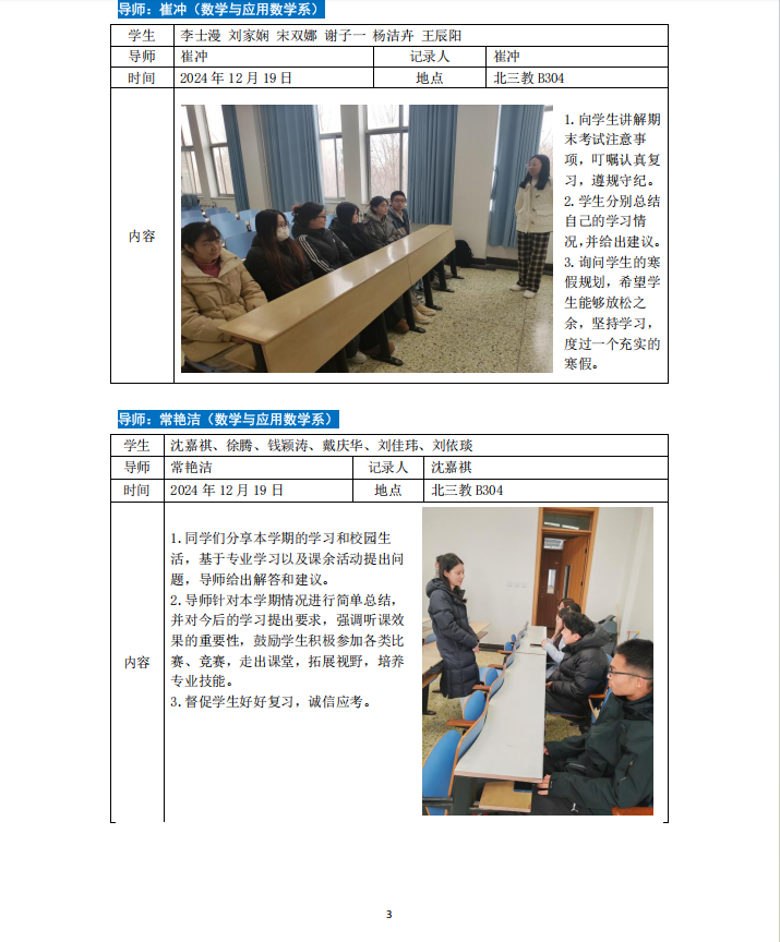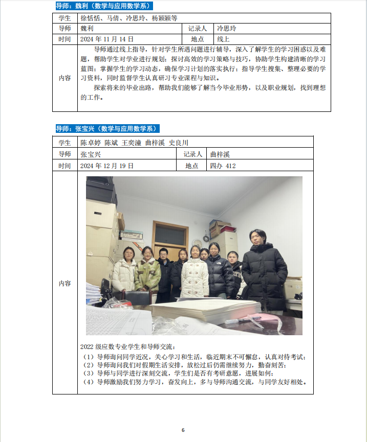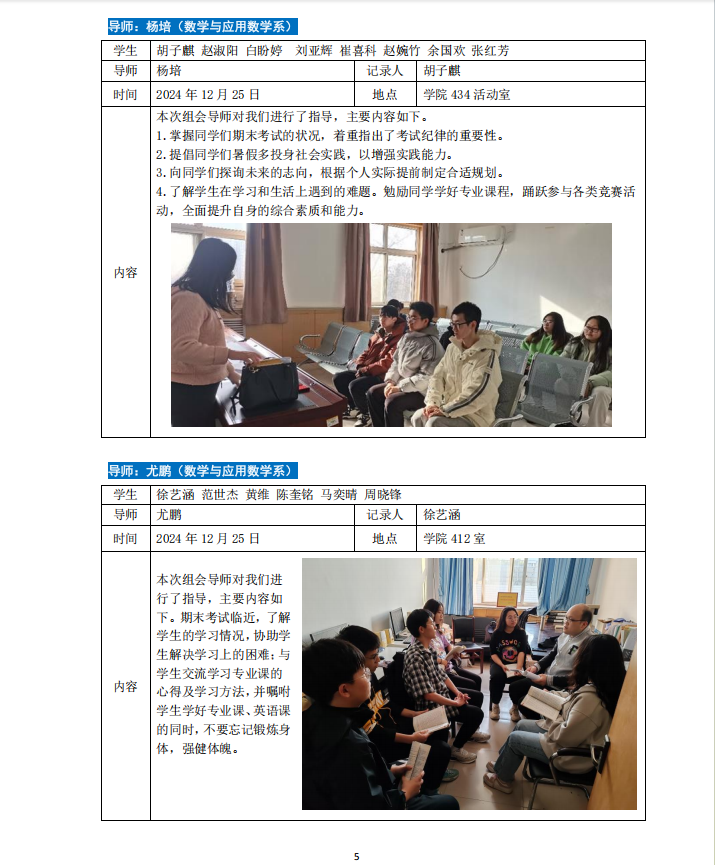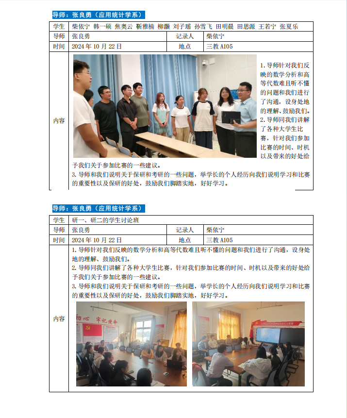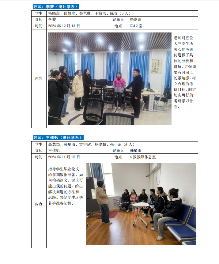 统数学院专业导师引领育人活动集锦(2024-2025-1)