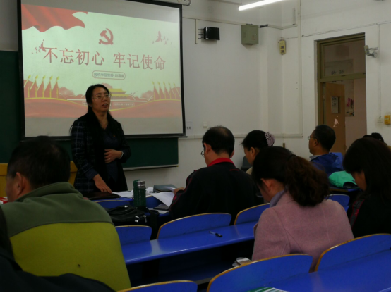 10月28日下午,数统学院党委书记赵春果、院长梁建英,分别在B102教室为全院教工讲授了“不忘初心、牢记使命”专题党课。