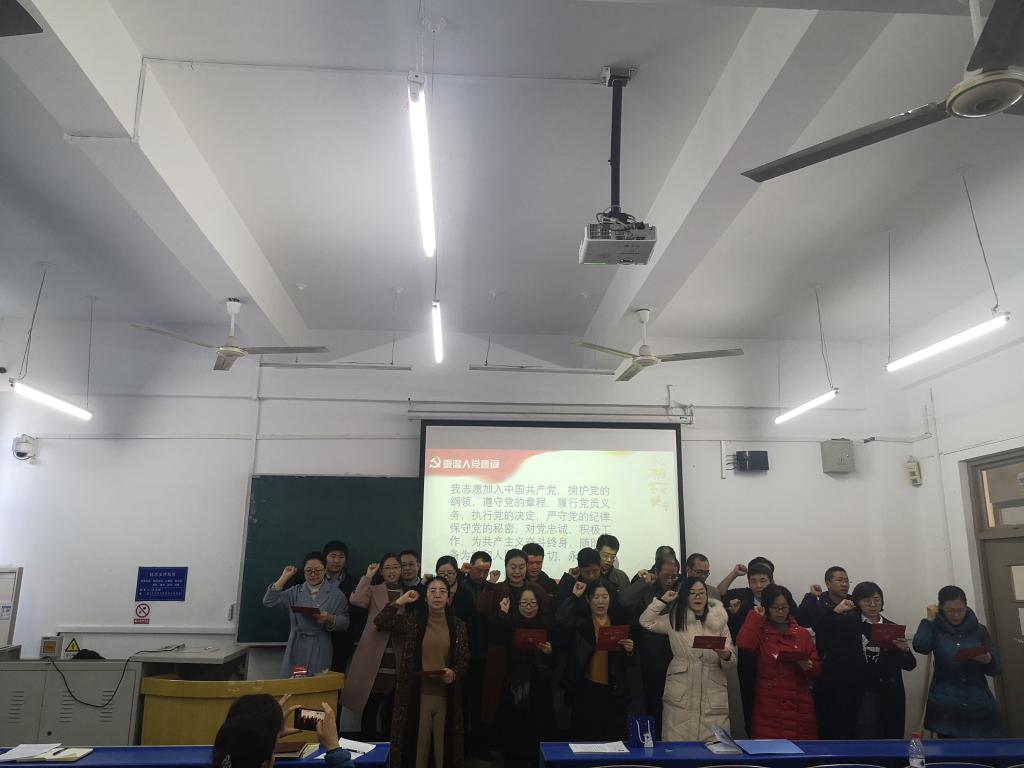 赵春果介绍了在“不忘初心、牢记使命”主题教育中,全院党员真抓实干,认真履行工作职责,为学院建设与发展做出了突出贡献,并为22名党员发放政治生日贺卡并佩戴党员徽章。之后全体人员肃立奏唱《国际歌》,让每一名中国共产党党员时刻铭记这种国际主义的精神,永葆共产党人的精神信仰,激励大家前行,催促大家奋进,鼓舞大家为实现共产主义而奋斗终身。接下来,22名党员重温了入党誓词。最后15名党员代表分享了入党以来的心得体会,分享了工作、生活中的欢乐与汗水、牺牲与奉献,令与会人员深受感动和鼓舞。