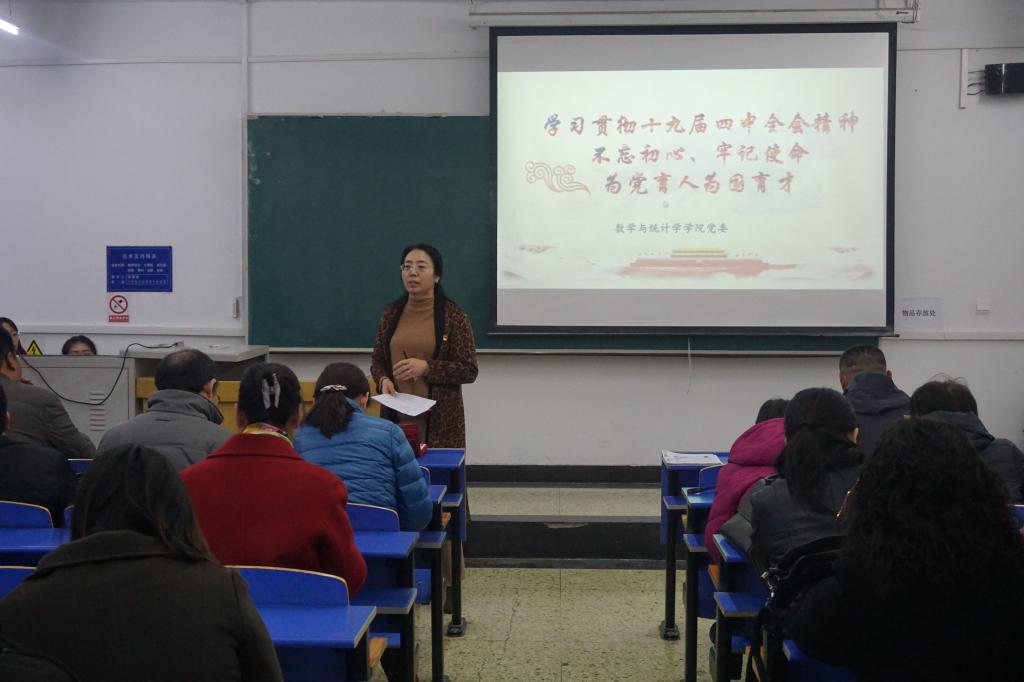12月2日下午,数学与统计学学院党委根据“不忘初心、牢记使命”主题教育要求,在B102教室为教工党员举办了“集体政治生日”主题活动。学院院领导、全院教职工参加。活动由党委书记赵春果主持。