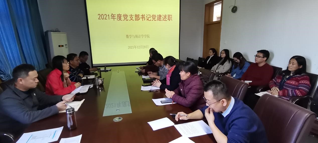 12月20日下午,数学与统计学学院开展2021年度党支部书记述职评议活动。活动由学院党委书记祃海霞主持,全体党委委员和党支部书记参加。