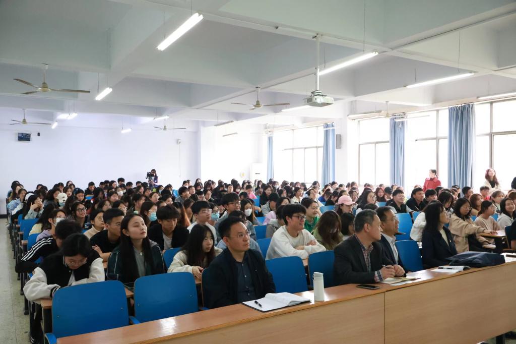 4月27日下午,校党委常委、副校长田学斌在C310教室作学习贯彻习近平新时代中国特色社会主义思想主题教育报告,数学与统计学学院全体班子成员、包联班级2022级统计一班全体同学和数学与统计学学院、财政税务学院的部分师生共计240余人参加。