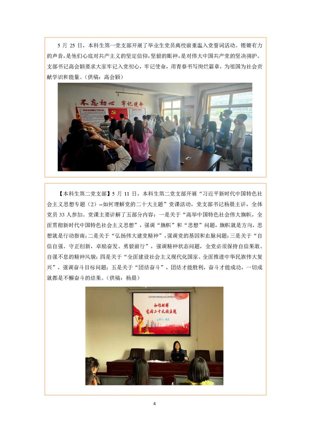 【本科生第一党支部】5月22日,本科生第一党支部召开了全体党员大会,开展预备党员转正及发展预备党员工作、党支部书记为全体党员讲党课活动。支部书记高会颖以《反对本本主义》的文本考察为主要内容,讲解了习近平关于调查研究的重要论述、毛泽东《反对本本主义》的写作背景、七部分关于调查研究的主要内容及重要思想、毛泽东关于调查研究重要文本的当代价值,并结合统计学专业的发展前景,对全体学生党员提出希望和要求,要做好统计人、做好调查研究,用专业知识服务祖国和社会需要。