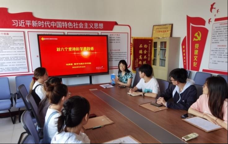 【本科生及研究生党支部】5月22日,四个学生党支部开展主题联学活动,学院党委书记祃海霞为党员代表作主题教育辅导报告。祃海霞以《对六个坚持的学思践悟》为题,在系统介绍“十个明确”“十四个坚持”“十三个方面成就”“两个结合”“六个必须坚持”的基础上,结合工作实际,以坚持人民至上、坚持问题导向、坚持系统观念为学习重点,带领大家回顾了学院“六个一”党建的系统设计思路和主要内容;介绍了基于党务业务深度融合难题的党支部“一两句话、三五件事、七八成果”解题思路以及取得的党建引领路径图成果;同时,结合三全育人、五育并举教育要求,从专业导师规范、专业地图及学生发展路径规划、专业导学简图设计等方面解读了“五位一体愿景引领”在专业育人中的具现思路和举措,鼓励同学们好好学习、积极实践,做善思考、会学习的“心灵手巧”有用人才。