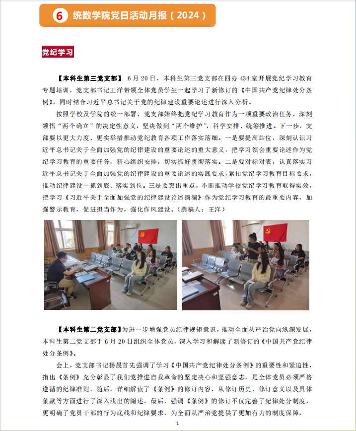 【本科生第一党支部】6月20日,本科生第一党支部开展了《党纪在我心,万里任我行》党规党纪主题教育活动。