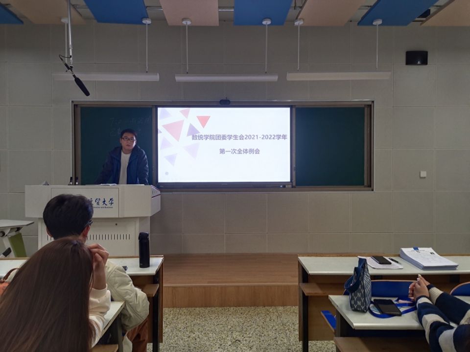 10月17日晚七点,数学与统计学学院于北三教B308召开团委学生会本学期第一次全体会议。团委书记王洋老师出席,学生会执行主席韩家昊主持,学生会全体成员参加。