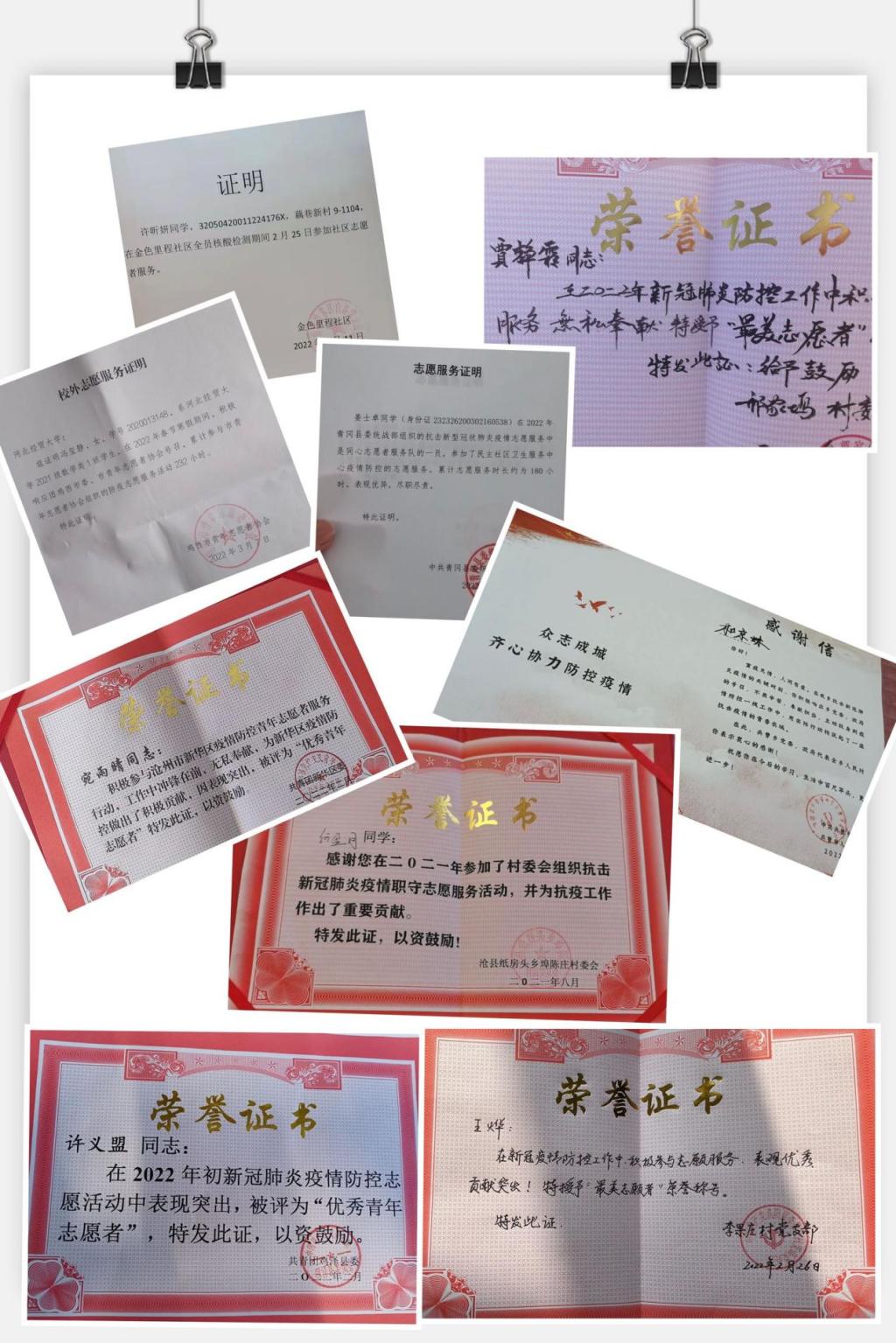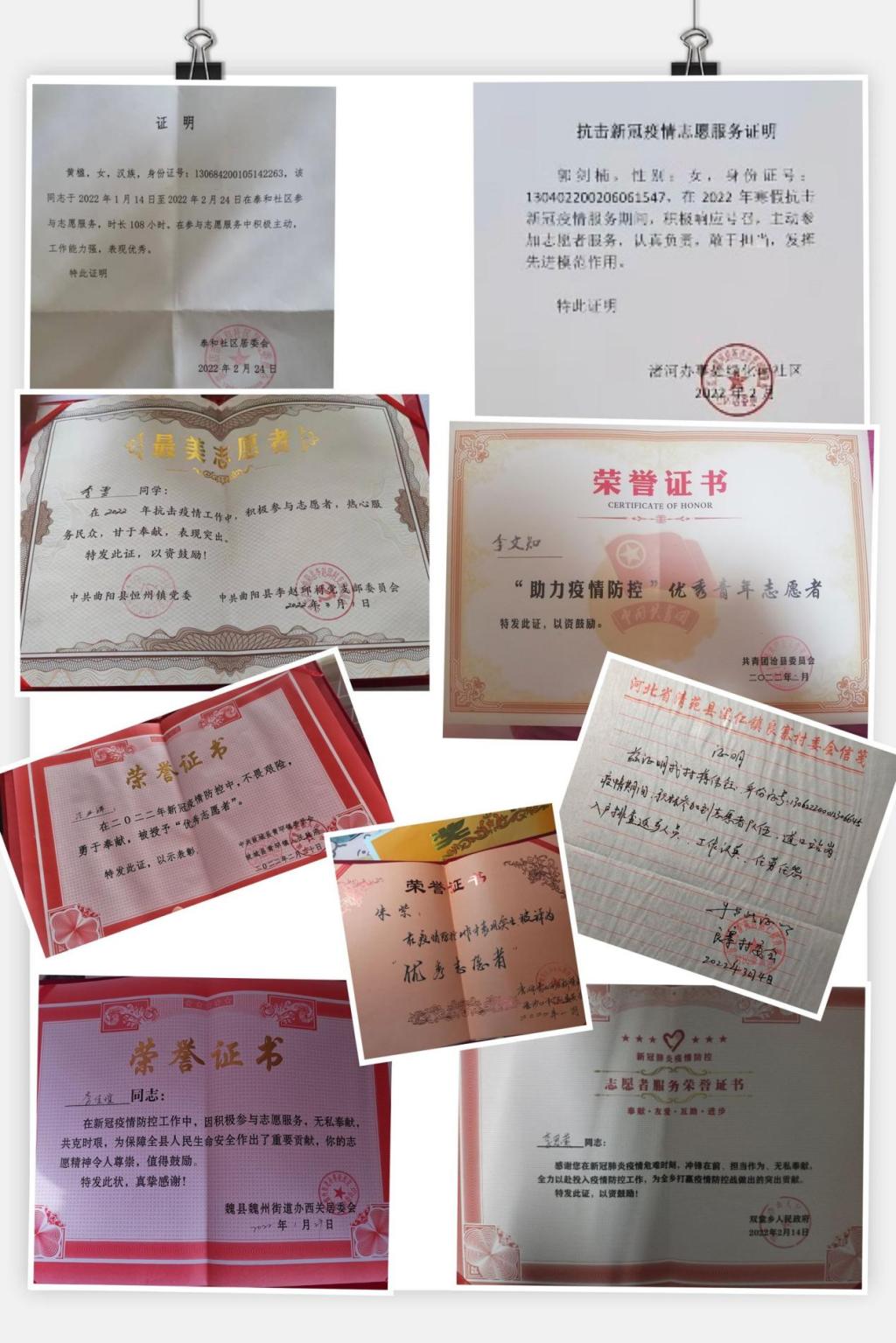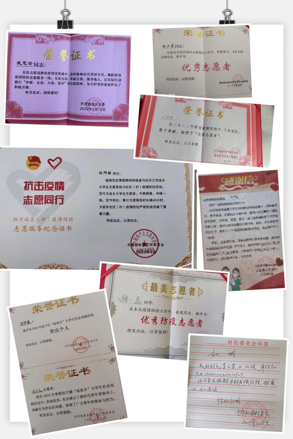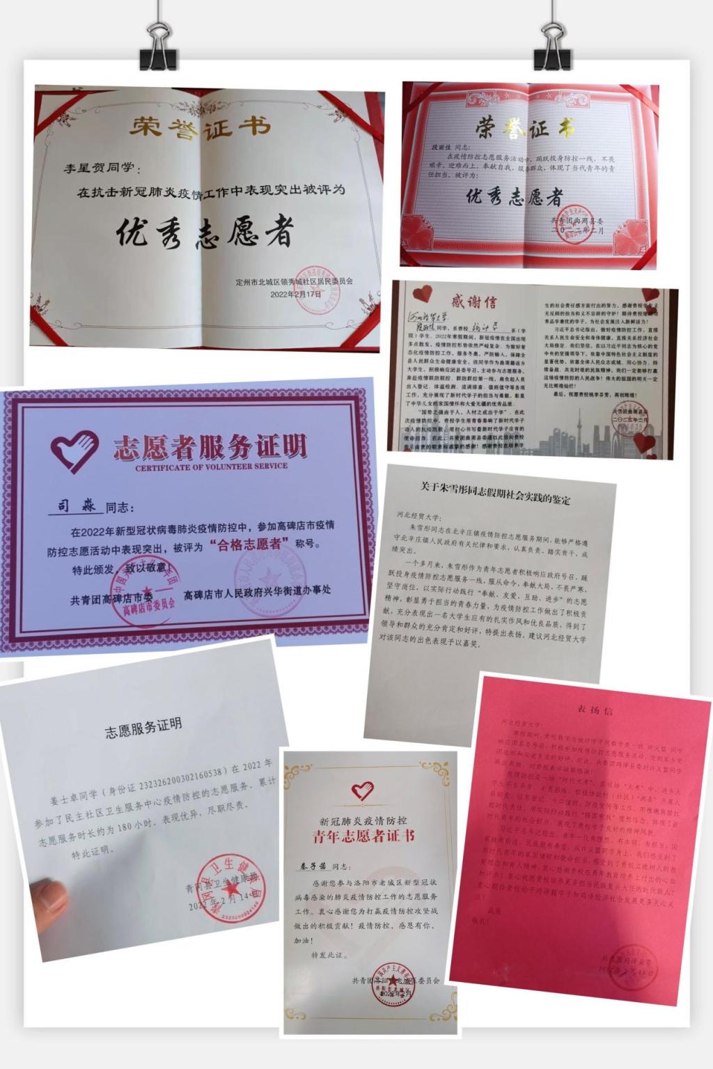 62位志愿学生名单、志愿服务工作照、荣誉证书及感谢信等附后。