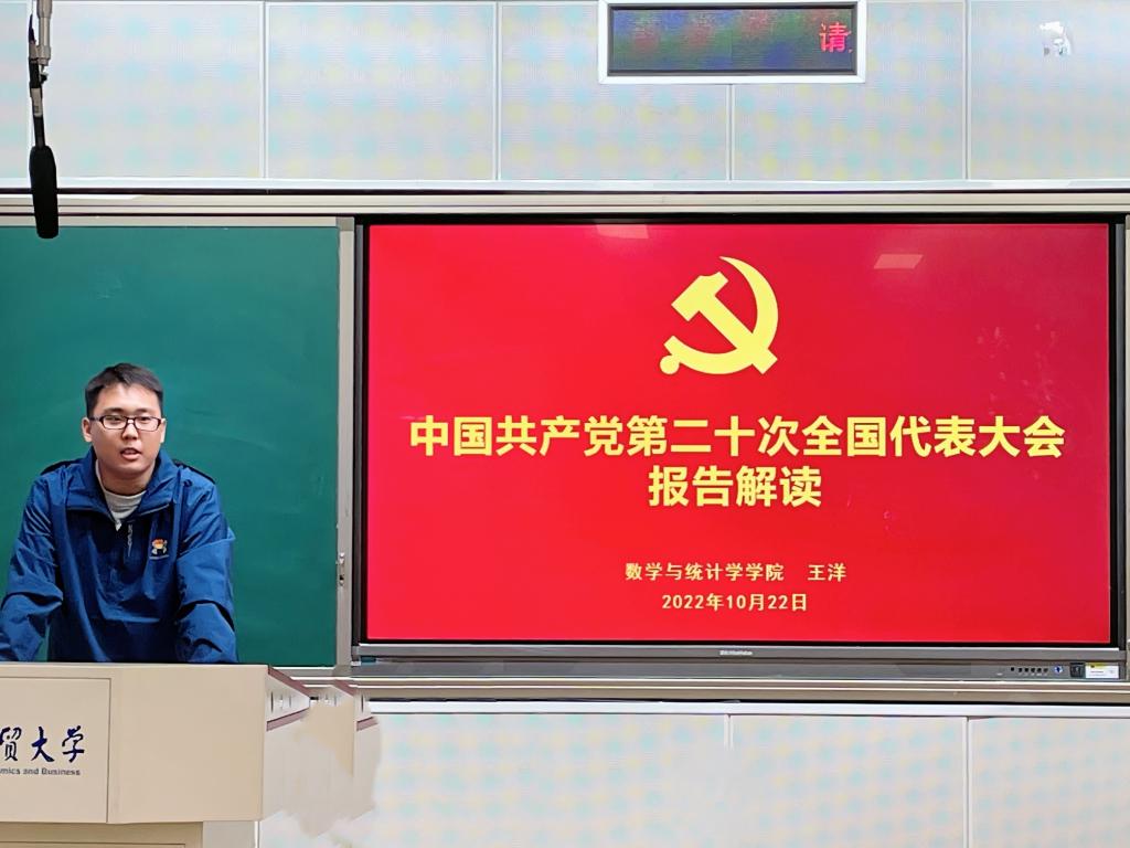 为更好地学习宣传党的二十大精神,10月22日晚7点,数学与统计学学院在北三教A103举行党的二十大报告解读会。解读会由院团委书记王洋老师主讲,院学生会成员代表、2020级、2021级各班团支书、宣传委员和组织委员参加。