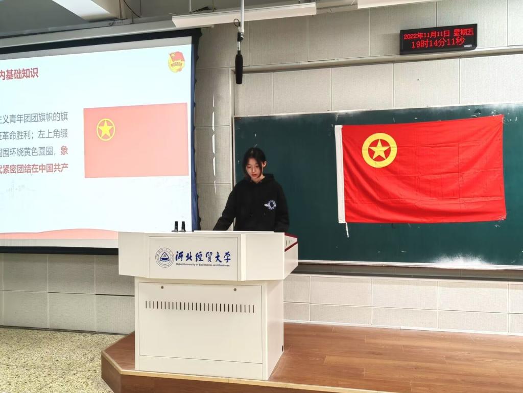 本次课程主要围绕共青团的光辉历史展开。首先,她从共青团的基础知识讲起,详细介绍了团旗、团徽和团歌,强调这些是共青团的标识,需要每一位团员的尊重与爱护!接着,她带领大家一起回顾了共青团在百年奋斗中的光辉历程。1921年7月,中国共产党成立后,青年团作为党的预备学校、在各地建立发展社会主义青年团也成为了当时党的议题之一。1922年5月5日,在无产阶级革命导师马克思诞辰104周年纪念日的这一天,中国社会主义青年团第一次全国代表大会在广州市东园隆重开幕。至此,中国的青年团组织实现了思想上、组织上的完全统一,中国青年运动从此有了自己的核心。最后,她重点讲述了中国共青团从团一大到团十八大以来的历次会议精神。共青团始终坚定不移跟党走,共青团将以党的二十大为新的起点,不负历史使命、勇担时代重任,坚定不移,砥砺前行,团结带领共青团员前赴后继、勇当先锋,继续抒写中国青年运动的华章。