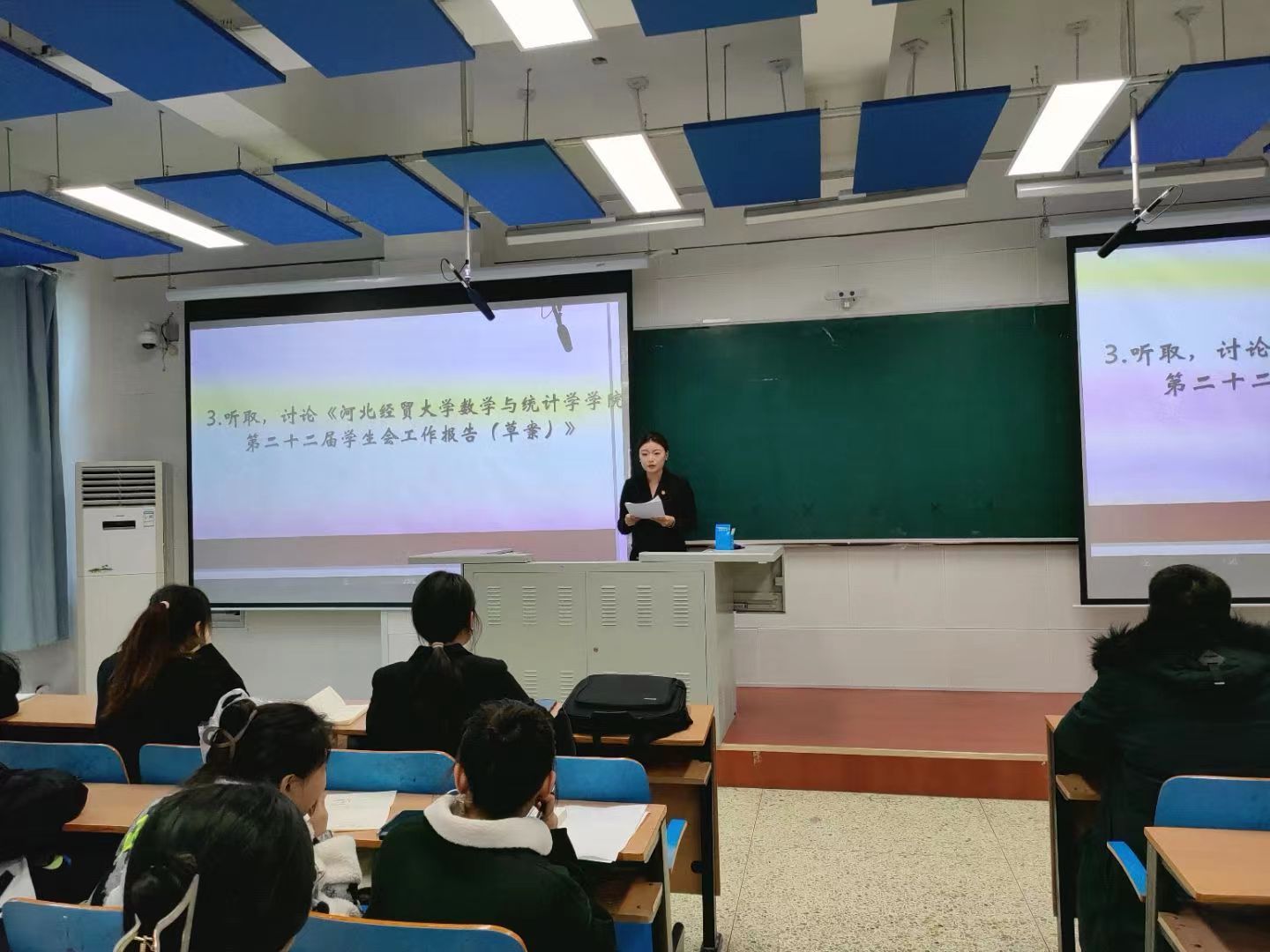 11月12日,数学与统计学学院于北三教C310召开第五次学生代表大会,2020、2021、2022、2023级学生代表参加大会。大会分为预备会议和全体大会两部分进行: