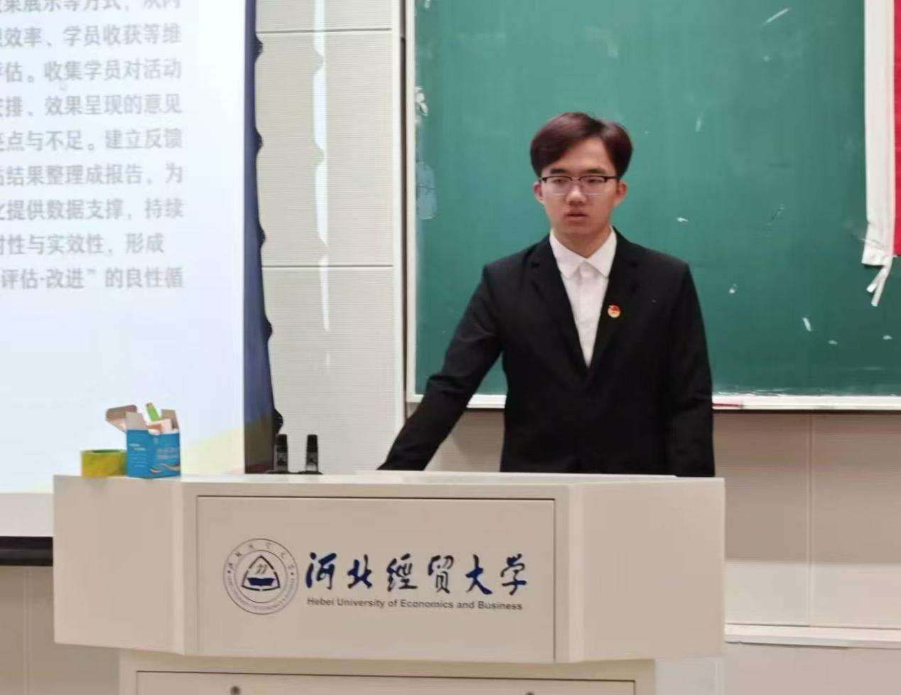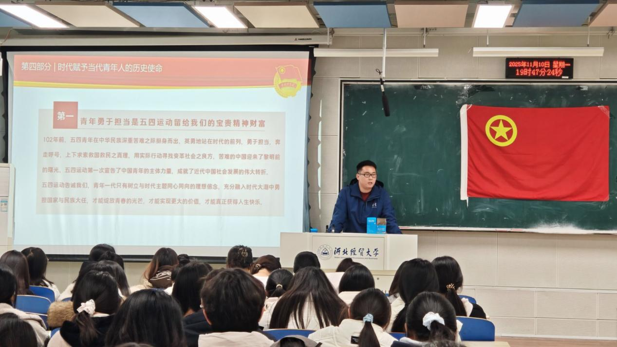 在第四课《团学理论知识与"三会两制一课"创新实践》中,团委实践竞赛部部长庞炳章带领同学们系统学习团的光辉历史、性质宗旨、奋斗目标,明确新时代团员的责任与使命,引导广大团员青年以更加饱满的热情、更加扎实的行动,在新时代展现青年担当,贡献青春力量。