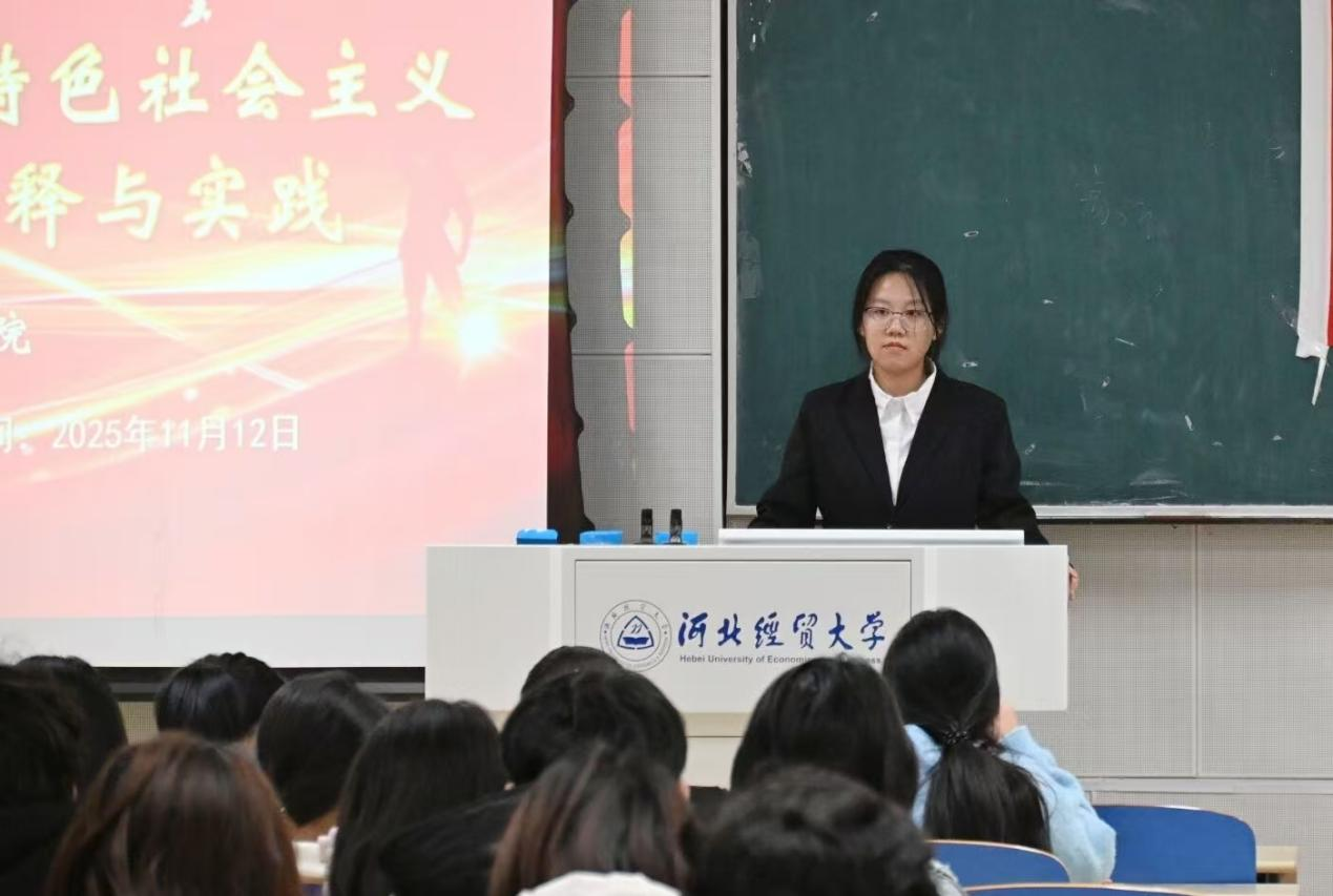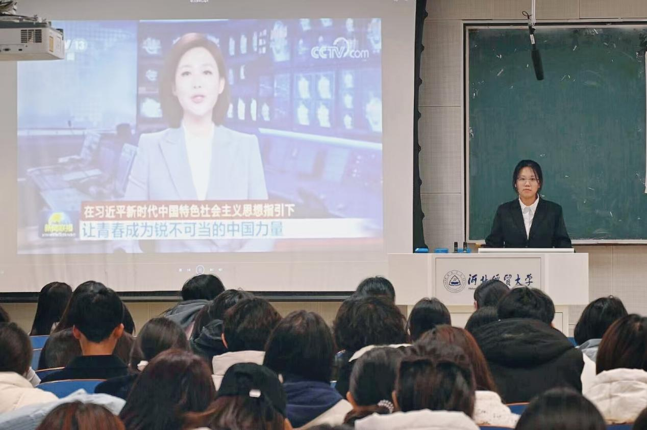 在第二课《习近平新时代中国特色社会主义思想的青年化阐释与实践》中,团委宣传部部长陈美菊通过讲解习近平新时代中国特色社会主义思想的时代内涵与传播体系,号召同学们要树立 “国之大者” 的大局意识,将个人理想融入国家发展大局,成长为有理想、敢担当、能吃苦、肯奋斗的新时代好青年。