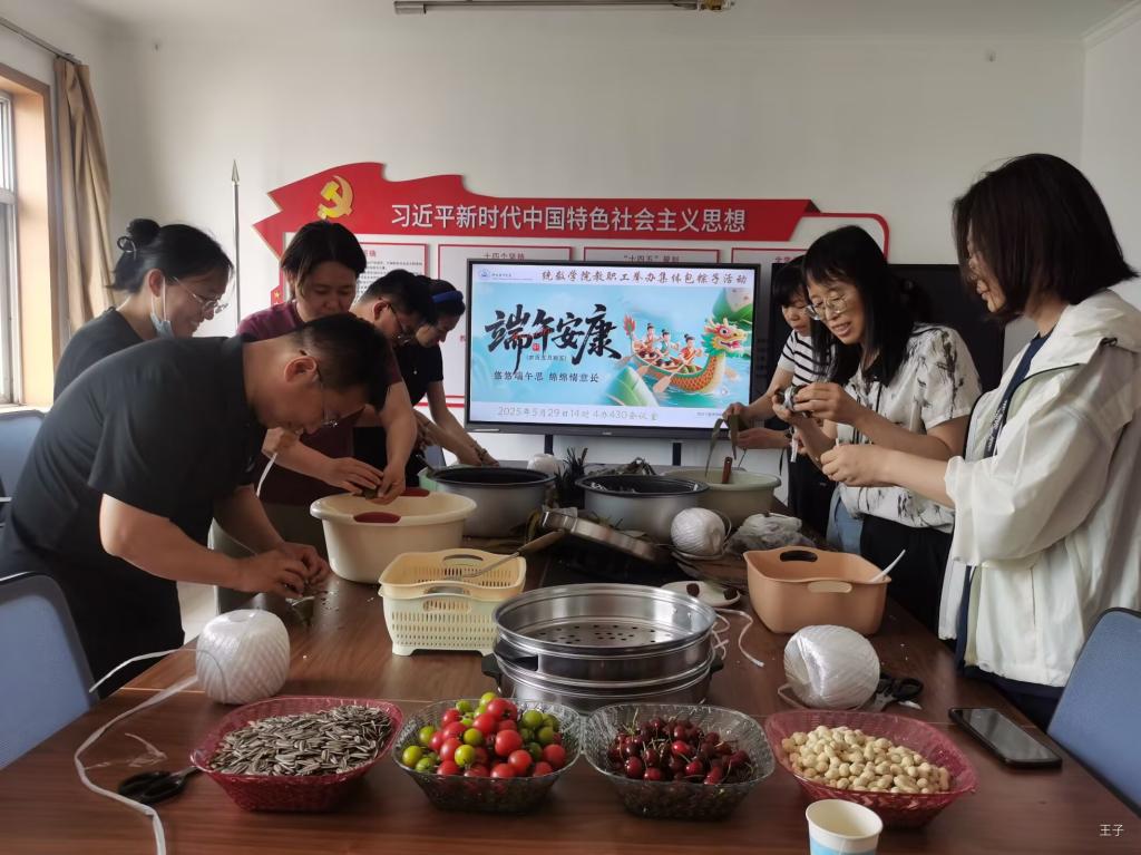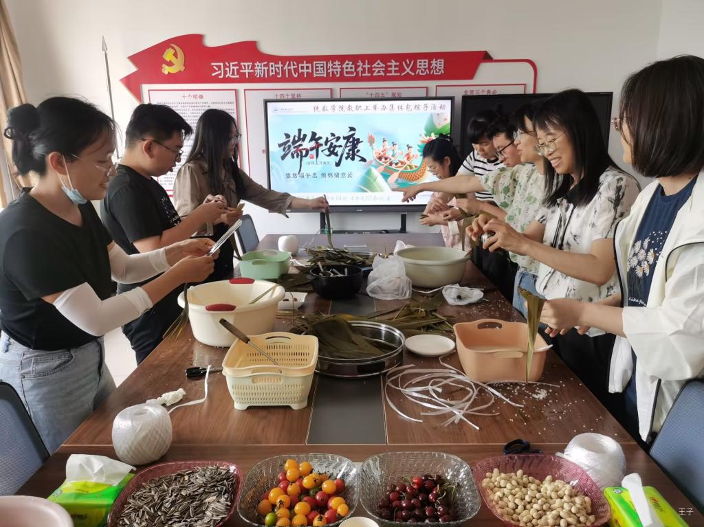 5月29日,端午节来临之际,太阳成集团tyc33455ccww组织教职工开展包粽子活动,这也是学院“以党建带工建”活动内容之一。