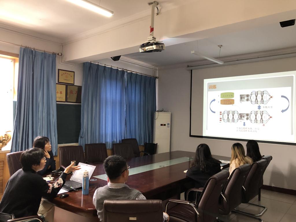 2021年10月14日(星期五)下午,tyc33455cc太阳成集团 “双百论坛”暨数统论坛系列讲座在四办405举行,数学与统计学学院王倩影副教授作题为《基于生成对抗网络的图像识别增强研究》的学术报告。院党委书记祃海霞及相关专业教师、研究生近20人到场参加,副院长闫亮主持报告会。