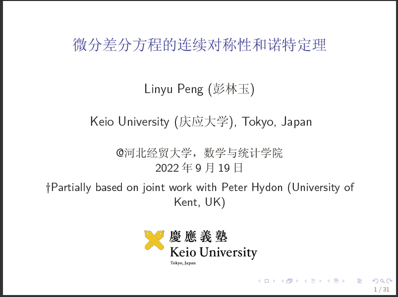 9月19日下午,数学与统计学学院邀请日本庆应大学彭林玉教授在线作题为“微分差分方程的连续对对称性和诺特定理”的学术报告。报告由数学与统计学学院副院长闫亮主持,30余名师生参加。