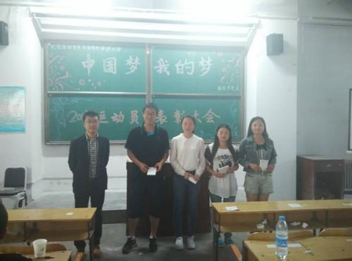 为了表彰在校运动会期间贡献突出的运动员,数统学院于5月4日下午在五教一教室召开了运动员表彰大会。党委书记赵春果及有关辅导员出席会议,并为优秀运动员颁发奖品和证书。