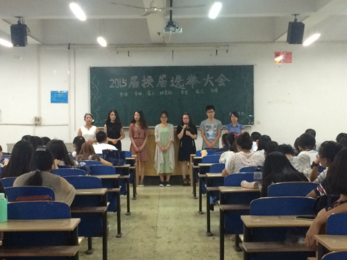 6月8日晚7点,数统学院在北三教A101教室举行了2015届学生会换届选举大会。学院党委赵学英副书记、学生办公室主任周广军老师、团委书记曲博老师参加了大会。