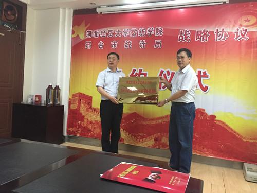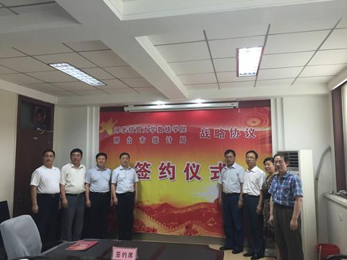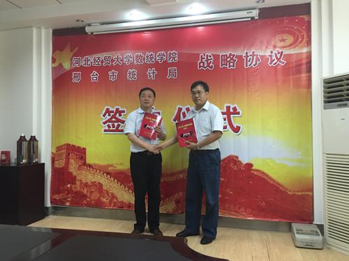 6月12日下午,数统学院与邢台市统计局战略合作协议在邢台市统计局隆重举行。数统学院院长赵秀恒、邢台市统计局局长兴连根代表双方签约。协议包括三方面内容: