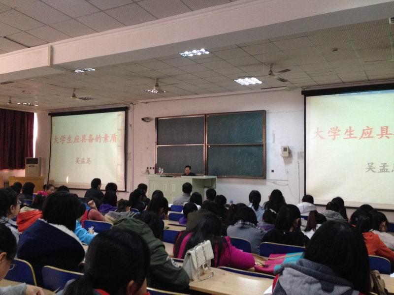 吴孟恩从青年大学生应掌握的专业知识与技能讲起,深入剖析了大学生应具备的素质,阐明了提升素质能力所应遵循的规律、方法等,并以“实现中华民族伟大复兴和中国梦最重要的是——文化”为引题,提出了只有实现文化复兴,才能最终实现“中国梦”的观点。会后,学院聘吴孟恩先生为学生“人生导师”。