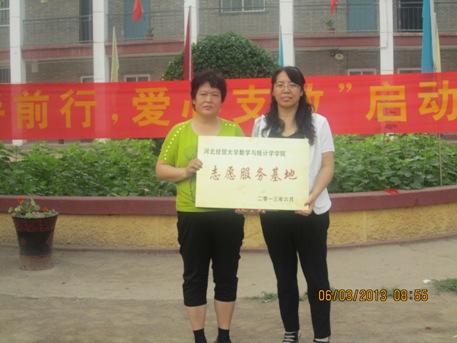 2013年6月3日上午,我院“携手前行,爱心支教”启动仪式在五七路联合子弟小学隆重举行。学院党总支副书记赵春果、五七路联合子弟小学校长田翠蕊、数统学院团总支书记张浩、数统学院青年志愿者代表以及五七路联合子弟小学全体学生等参加了仪式。