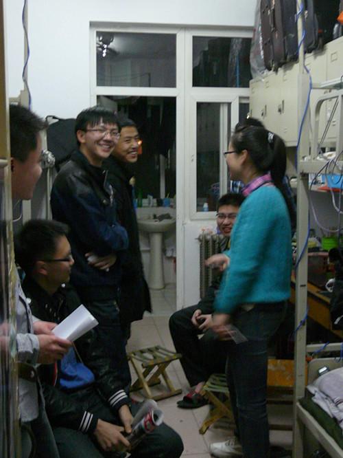 在宿舍里,各部部长向大一学生做了简单的自我介绍,将职责解释了一番,使他们对学生会有了更深的了解。大家就弟学妹关心的生活、学习、就业等多方面的迷惑进行交流,场面异常温馨。