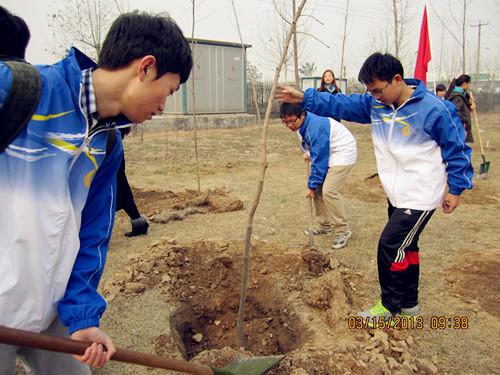 为了践行十八大精神,推进生态文明建设,建设“美丽经贸”,我校教职工及学生志愿者代表于3月15日在一餐西侧进行植树活动。上午九点,在院党总支书记赵春果的带领下,我院同学将手中的银杏树苗栽在了“儒林”之中,虽然还是春寒料峭,但是大家始终热情洋溢,挥动铁钎积极参与其中。