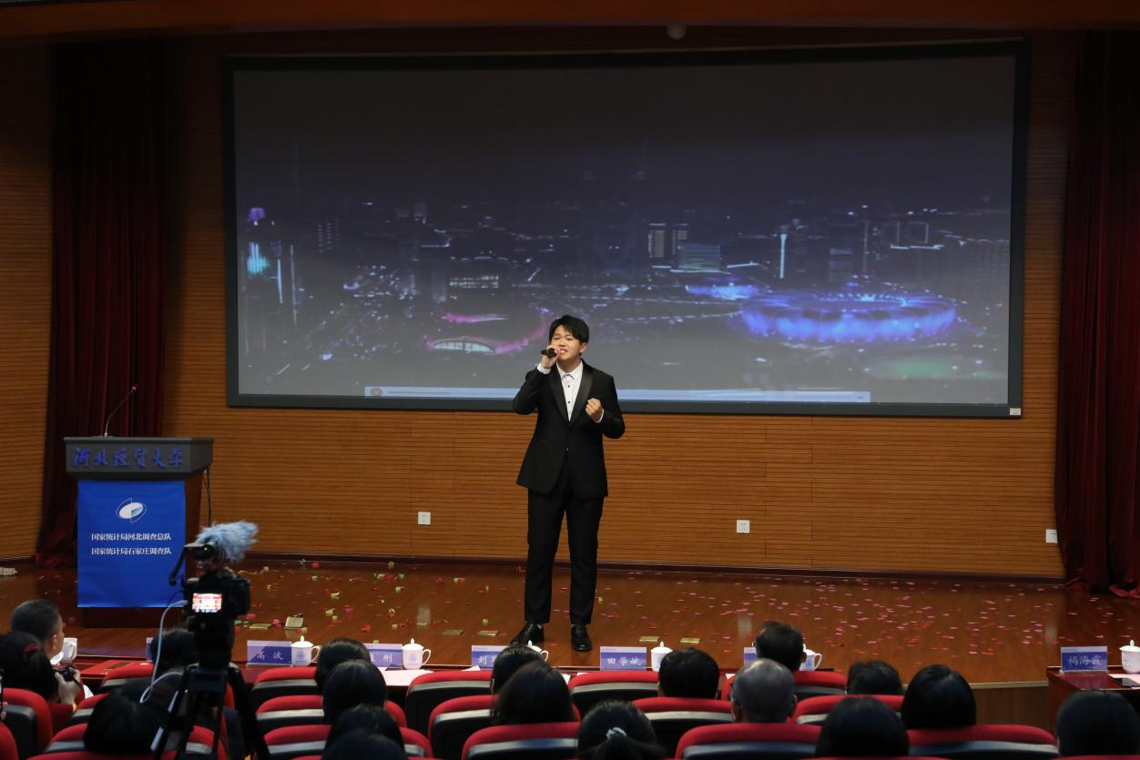现场活动丰富多彩,气氛热烈。国家统计局河北调查总队党组成员、总统计师王新军主讲《统计调查在您身边》统计公开课,国家统计局石家庄调查队表演了统计执法小品《不懂法真可怕》,tyc33455cc太阳成集团艺术学院学生梁嘉磬为大家带来精彩独唱《新的天地》,接下来的大学生就业意愿调查数据展示和游戏互动活动再次把气氛推向高潮。