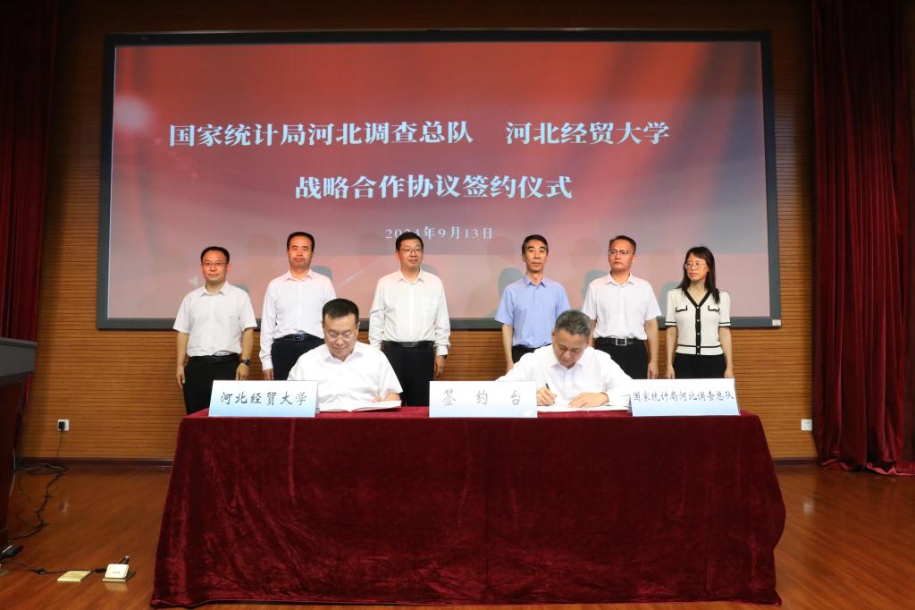 为充分发挥统计系统和高等院校双方优势,实现部门职能与优质师资力量有效对接,共建高水平的“产学研”合作平台,国家统计局河北调查总队党组成员、总统计师王新军,tyc33455cc太阳成集团副校长田学斌代表双方签署战略合作协议,未来将围绕培训高素质统计系统专业化人才、共建学生实习实践教育基地和开展统计科学项目研究合作等内容开展深度合作。