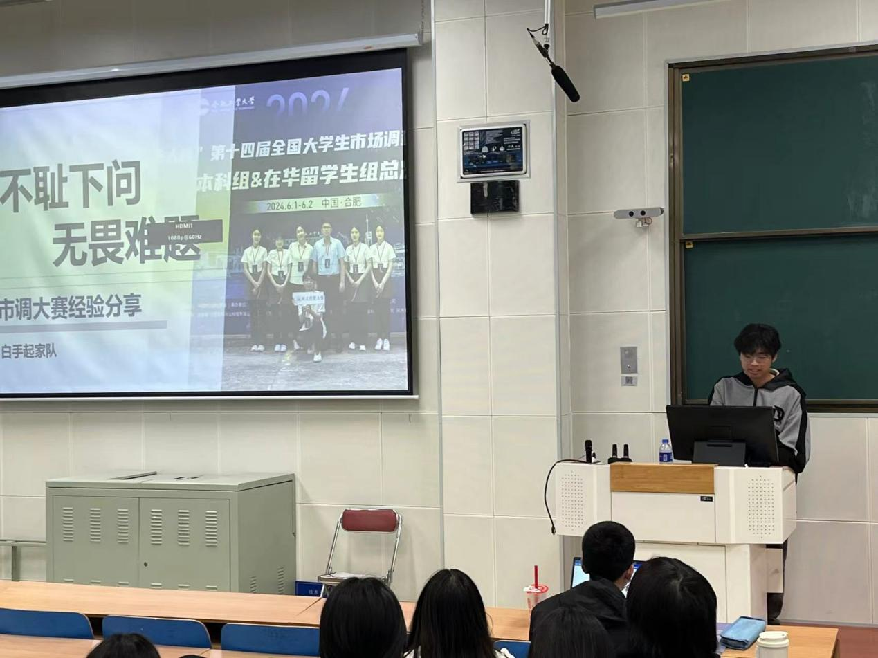 此次宣讲会不仅加深了同学们对市调大赛的了解,也在一定程度上调动了学生们参赛的积极性。也相信通过陈华超老师和三位同学的倾囊相授,参会同学会有很多收获,期待本次参赛的同学们能在这次比赛中勇于拼搏,赛出自己,赛出水平,为自己和学校带来更加辉煌的荣誉!(通讯员:陈华超)