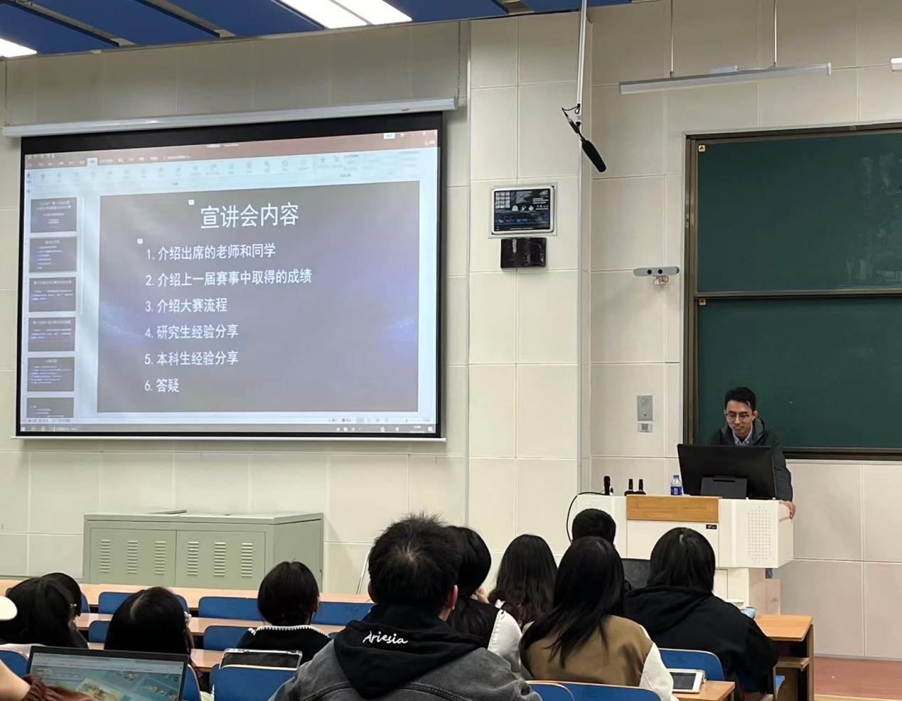 首先,市调赛事负责人陈华超老师向同学们介绍了本次宣讲会出席的老师和同学,并讲解了我校学生在本项赛事上取得的优异成绩,去年我校本科组共荣获国家一等奖1项、国家二等奖1项、国家三等奖7项、省一等奖7项、省二等奖5项、省三等奖2项。研究生组共获国家一等奖2项、国家三等奖3项、省一等奖3项、省二等奖2项。