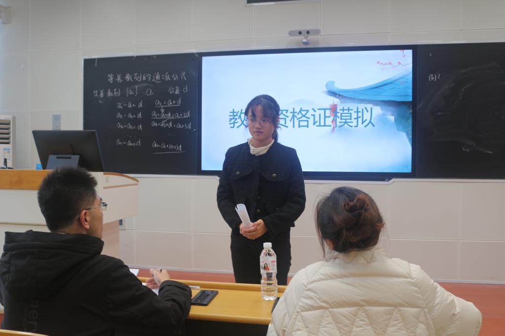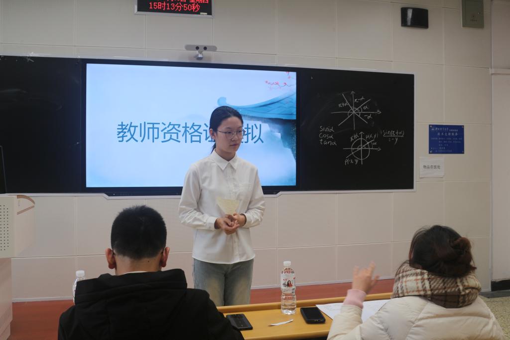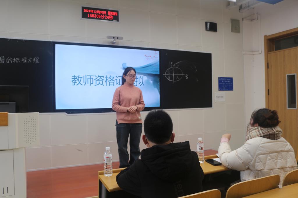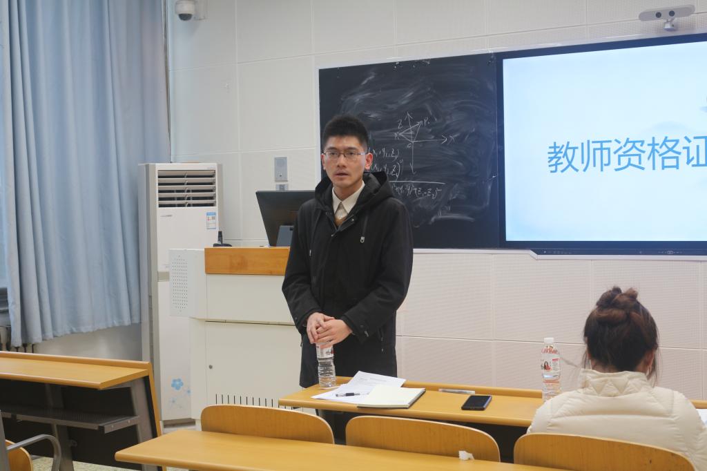 为进一步帮助我院学生熟悉教师资格证面试基本流程,感受考场氛围,提升教学技能,12 月 5 日下午,太阳成集团tyc33455ccww于北三教B112举办第一届“明日之师”教资面试模拟大赛。本次比赛由院学生会学习部主办,数学系教师李皓男、谢嘉毅出席并担任评委。