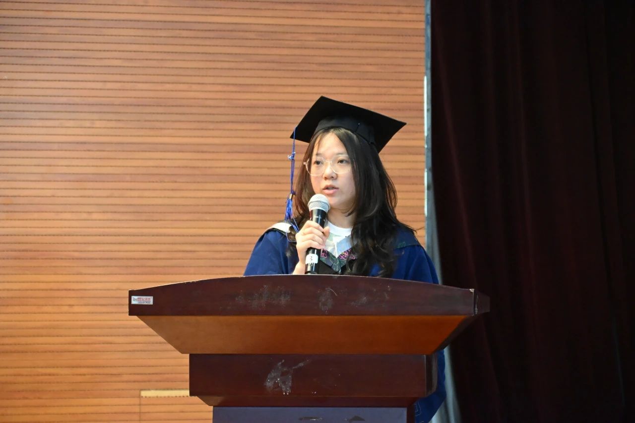 2021级应用统计学一班石志俣、2022级统计学硕士研究生宋盈盈先后代表毕业生发言,表达了对学校和学院辛勤培育的感激之情,表示会谨记嘱托,带着母校的荣光和老师们的期许踏上新的征程。