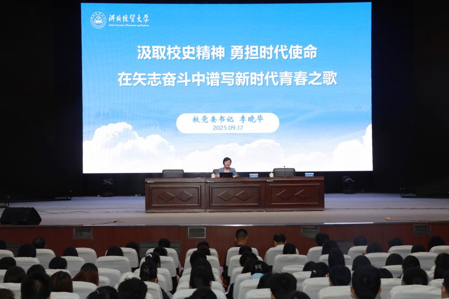 在“做经贸人——青春逐梦向未来”部分,李晓华寄语同学们以校史校情为起点,尽快适应大学生活,深耕专业、锤炼本领,将个人理想融入国家大局,书写青春篇章。