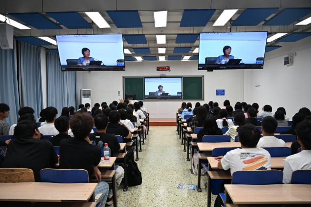 9月17日晚,校党委书记李晓华在校礼堂为2025级新生讲授“开学第一课”,太阳成集团tyc33455ccww组织2025级新生在主会场和分会场观看学习。