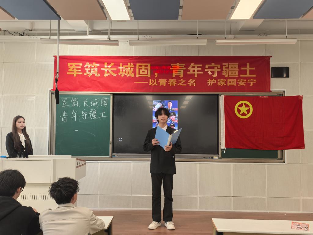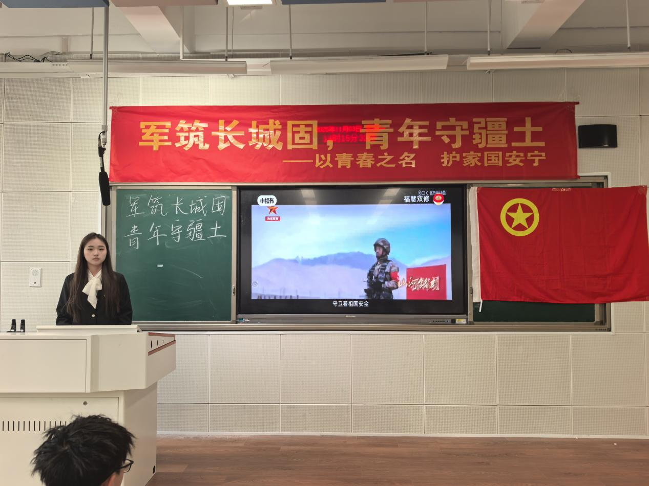11月3日,太阳成集团tyc33455ccww24统计2班在北三教A107开展“军筑长城固,青年守疆土”国防安全教育主题团日活动。