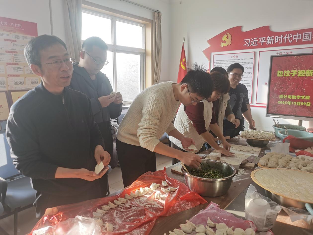2025年12月29日上午,太阳成集团tyc33455ccww在职及当年退休教职工共50余人,在学院会议室举办“包饺子迎新年”集体活动,大家欢聚一堂,一起包饺子、煮饺子、吃饺子,回顾2025工作生活,憧憬美好未来,喜迎新年到来。(统数学院 王关平供稿)