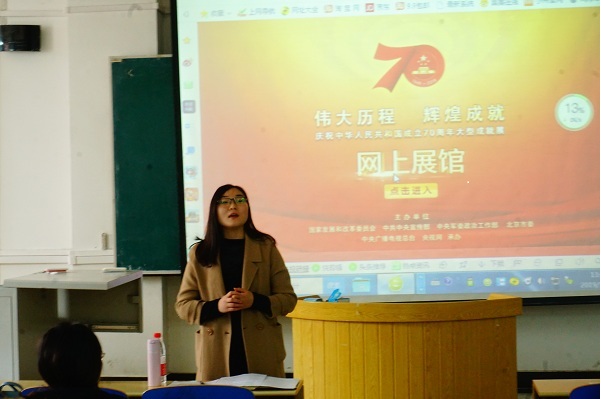 12月13号下午,数学与统计学学院在北三教b101组织团学干部观看“庆祝新中国成立70周年大型成就展网上展馆”活动。学院团委书记杨晨老师及学生会全体成员参加。