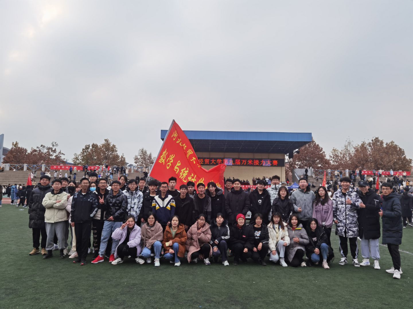 为提高学生体育锻炼的意识和顽强拼搏的精神,我校于11月28日下午1:30在东操场举办了万米接力大赛,数统学院的25名运动员和啦啦队与来自其他14个学院的运动员和啦啦队参加了此次比赛。