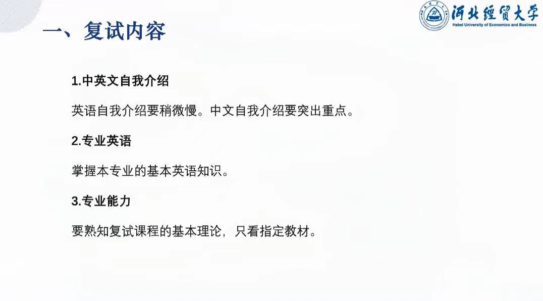 首先,他详细介绍了复试内容,考生应将重点放在中英文自我介绍、专业英语以及专业能力的准备上。接着,他谈到了一些线上复试和线下复试的注意事项,以帮助同学们应对参加复试时的一些突发情况。他表示,考研调剂考验同学们的耐心,希望同学们在有限的时间内,通过校内校外信息渠道收集更多调剂信息。最后,他耐心地解答了同学们提出的问题。