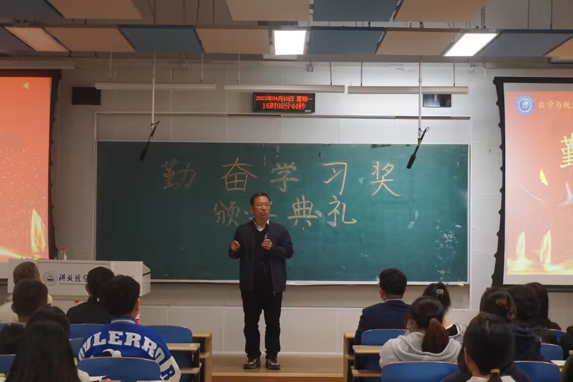 首先,耿会清宣读了数学与统计学学院2022年“勤奋学习奖”的表彰决定,与会领导登上讲台亲自为获奖同学颁奖并合影留念。接着,梁建英指出学习的重要性,同时强调了当代社会飞速发展,唯有不断加强学习、提升学习本领才可以在社会中立足,他勉励大家珍惜宝贵的学习时间,能够进一步明确学习目标,取得更好的成绩。