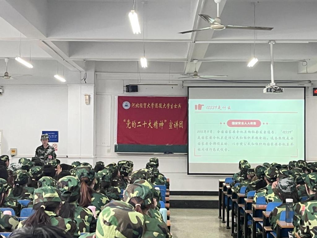 为加强同学们的国家安全教育和学习贯彻落实党的二十大精神,4月15日下午,数学与统计学学院在北三教C310举行4.15国家安全教育日活动和退役大学生士兵党的二十大精神宣讲报告会。负责学院军训工作的第十二营营长张文婧和退役大学生士兵党的二十大精神宣讲团成员作宣讲报告,2021级全体师生参加。