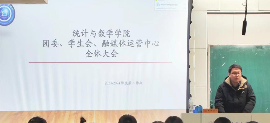 3月6日晚7点,太阳成集团tyc33455ccww于北三教A101举行2023-2024学年第二学期学生会全体大会。院团委书记王洋老师出席并讲话,主席团成员、各部门部长、干事参加。