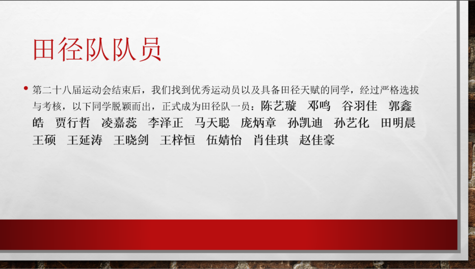 颁奖环节结束后,院田径队成立大会开始。王洋老师向大家介绍了田径队成立的重要意义,为这支充满朝气与活力的队伍送上美好祝愿。田径队队长伍婧怡也分享了自己对田径运动的热爱与憧憬,表达了刻苦训练、为校争光的强烈愿望。